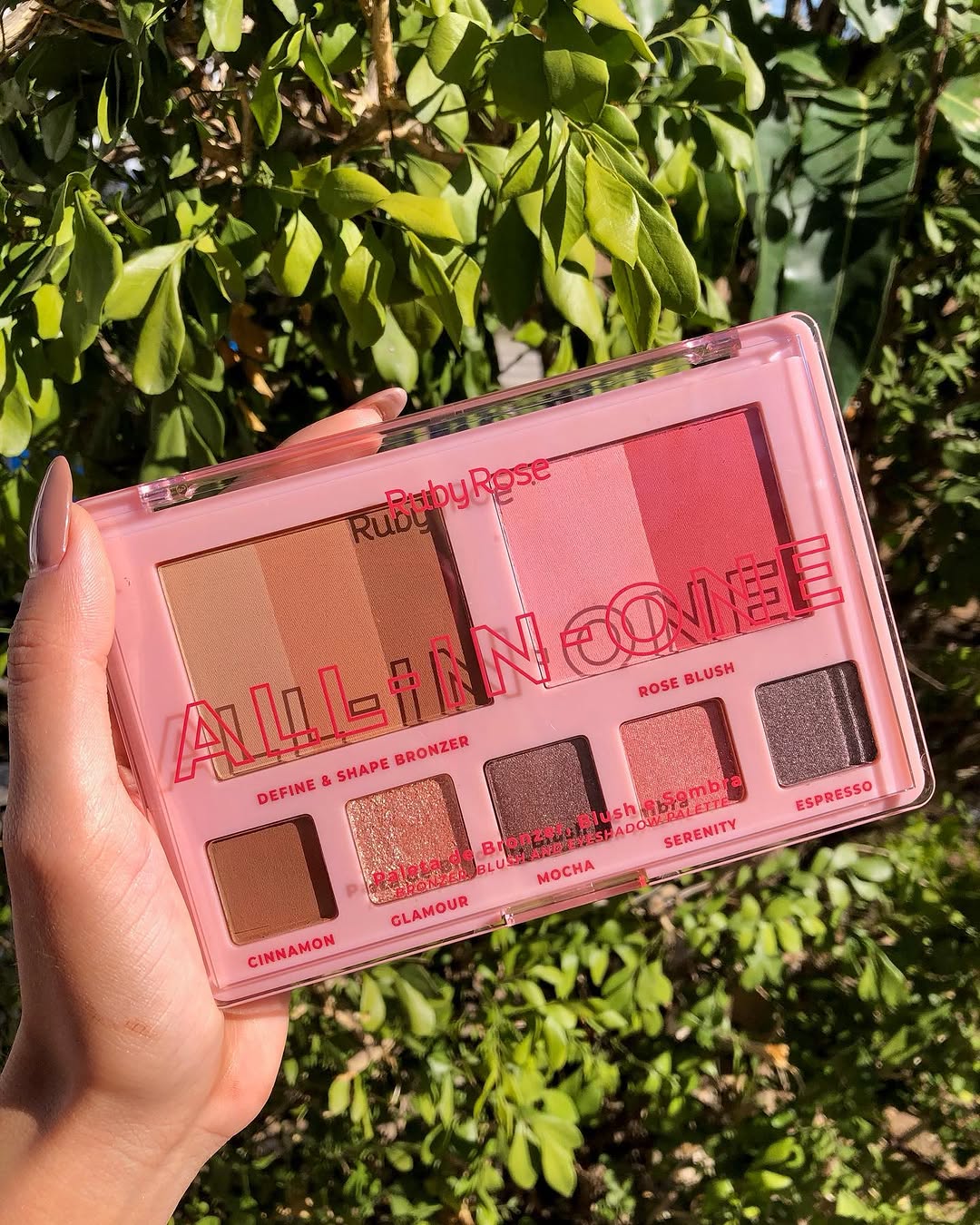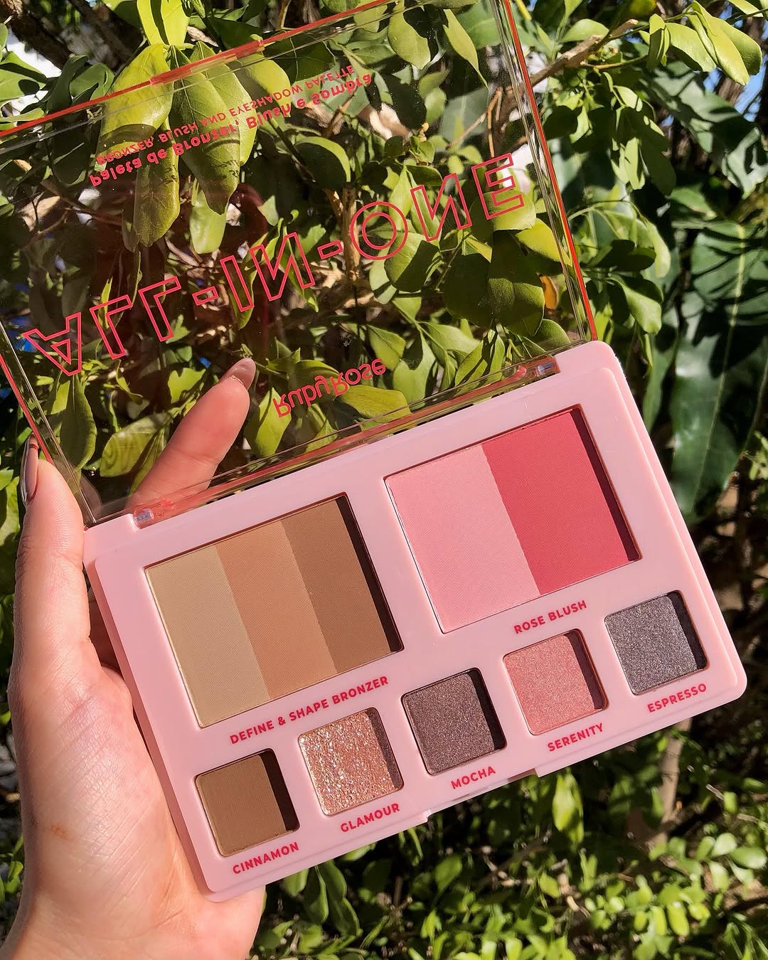 Compuesta por 3 tonos de bronceador, 2 tonos de rubor y sombras de ojos, la paleta All in one es multiusos, práctica para el día a día y perfecta para quienes buscan optimizar el espacio en su neceser.