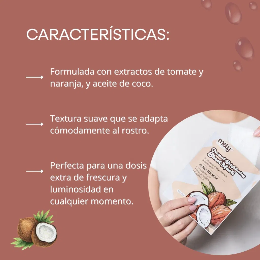 Transformá tu rutina de skincare con esta mascarilla nutritiva que ilumina y revitaliza la piel. Formulada con extractos de tomate y naranja, ricos en antioxidantes, y aceite de coco, conocido por sus propiedades hidratantes, esta mascarilla ayuda a mejorar la textura y el tono de tu rostro mientras lo deja suave y radiante. Perfecta para una dosis extra de frescura y luminosidad en cualquier momento.